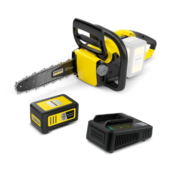 Dzięki niskiej wadze i idealnej długości ostrza bateryjna piła łańcuchowa CNS 18-30 firmy Kärcher jest idealna do wygodnego i wszechstronnego zastosowania przy pielęgnacji drzew. Wyjątkowo wysoka prędkość łańcucha sprawia, że każde cięcie jest szybkie i bezwysiłkowe. System napinania łańcucha, który nie wymaga użycia narzędzi oraz automatyczne smarowanie sprawiają, że akumulatorowa piła łańcuchowa jest niezwykle łatwa w użyciu. Połączenie hamulca i oburęcznego włącznika sprawia, że jest ona szczególnie bezpieczna. Zestaw zawiera urządzenie, ostrze, łańcuch, osłonę oraz butelkę oleju.