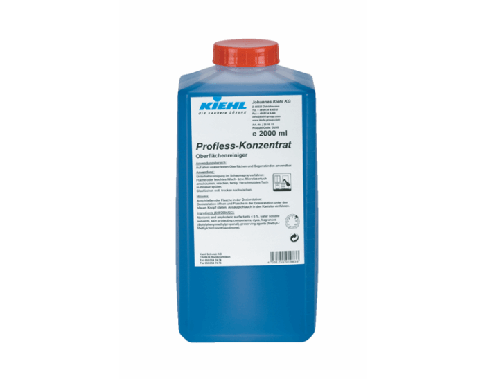 Roztwór roboczy Proflessu stosowany w procesie mycia metodą spray (wolną od aerozoli) szybko rozpuszcza brud i jest przyjazny dla czyszczonego materiału i skóry rąk. Roztwór roboczy Proflessu można przygotować za pomocą butelki dozującej z koncentratem lub dozowników KIEHLA:DosiExpressi DosiJet.