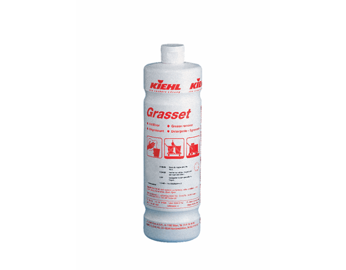 Alkaliczny, szybkodziałający środek do mycia kuchni przeznaczony do usuwania tłuszczu, oleju i białka pochodzenia roślinnego i zwierzęcego. Grasset można stosować z zimną i ciepłą wodą. Działa antykorozyjnie. Produkt zawiera wyłącznie składniki dopuszczone do czyszczenia w obszarze spożywczym.