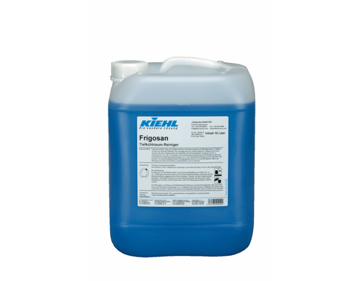 Frigosan usuwa oleiste i przesiąknięte tłuszczem zabrudzenia oraz resztki etykietek w pomieszczeniach zamrażalniczych podczas ich pracy. Nie wymaga przemieszczania żywności, rozmrożenia pomieszczenia czy też przerywania procesu chłodzenia. Frigosan stosowany jest do temperatury - 25 oC. Niskopieniąca receptura produktu pozwala na zastosowanie środka do mycia w maszynach jednotarczowych lub podczas mycia powierzchni metodą spryskiwania. Nie jest wymagane zastosowanie automatów myjących z zabezpieczeniem przed eksplozją. Umyta powierzchnia wysycha szybko i bez smug. Produkt może być stosowany bez żadnych wątpliwości w obszarze spożywczym.