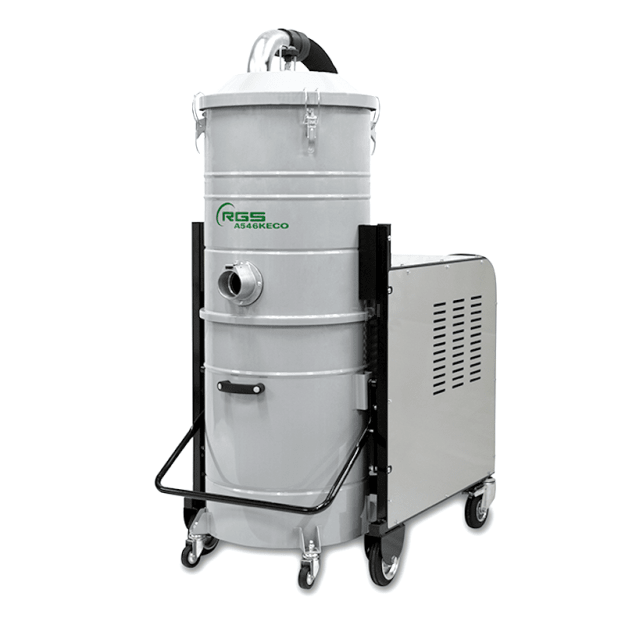 Trójfazowy odkurzacz przemysłowy serii ECO o mocy 4 kW, przeznaczony do zasysania pyłów, cieczy i pozostałości w środowiskach przemysłowych, nawet najcięższych dzięki zastosowanej mocnej metalowej ramie.