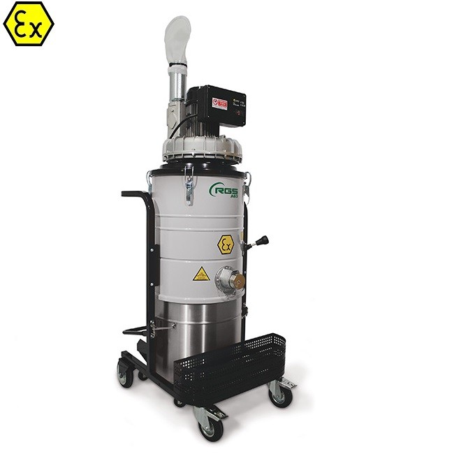 Odkurzacze przemysłowe w wersji ATEX mogą być stosowane w strefach zagrożonych wybuchem ze względu na obecność pyłu lub gazu wybuchowego. RGS oferuje urządzenia dedykowane do stref pyłowych z przyrostkiem "D" lub do stref zarówno gazowych i pyłowych z przyrostkiem "GD". Wszystkie odkurzacze są w kategorii "3", dzięki czemu mogą być stosowane w strefach 2-22, a niektóre modele są zbudowane przy użyciu komponentów kategorii "2" i mogą być stosowane w strefach 1-21. Do zastosowań w strefie 0-20 zaleca się użycie urządzeń pneumatycznych. Wszystkie maszyny są zbudowane przy użyciu komponentów elektrycznych zgodnie z dyrektywami ATEX. Wszystkie serie standardowych odkurzaczy dostępne są w wersjach ATEX.