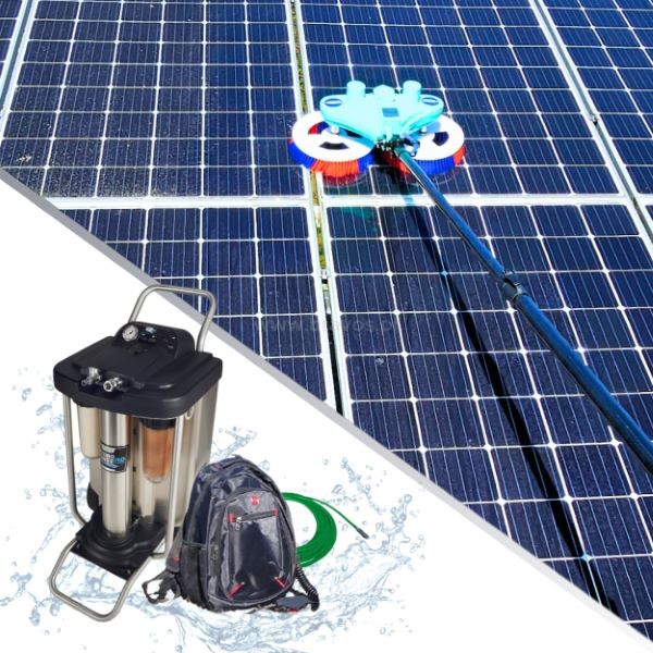 Kompletny zestaw do profesjonalnego czyszczenia powierzchni paneli fotowoltaicznych.